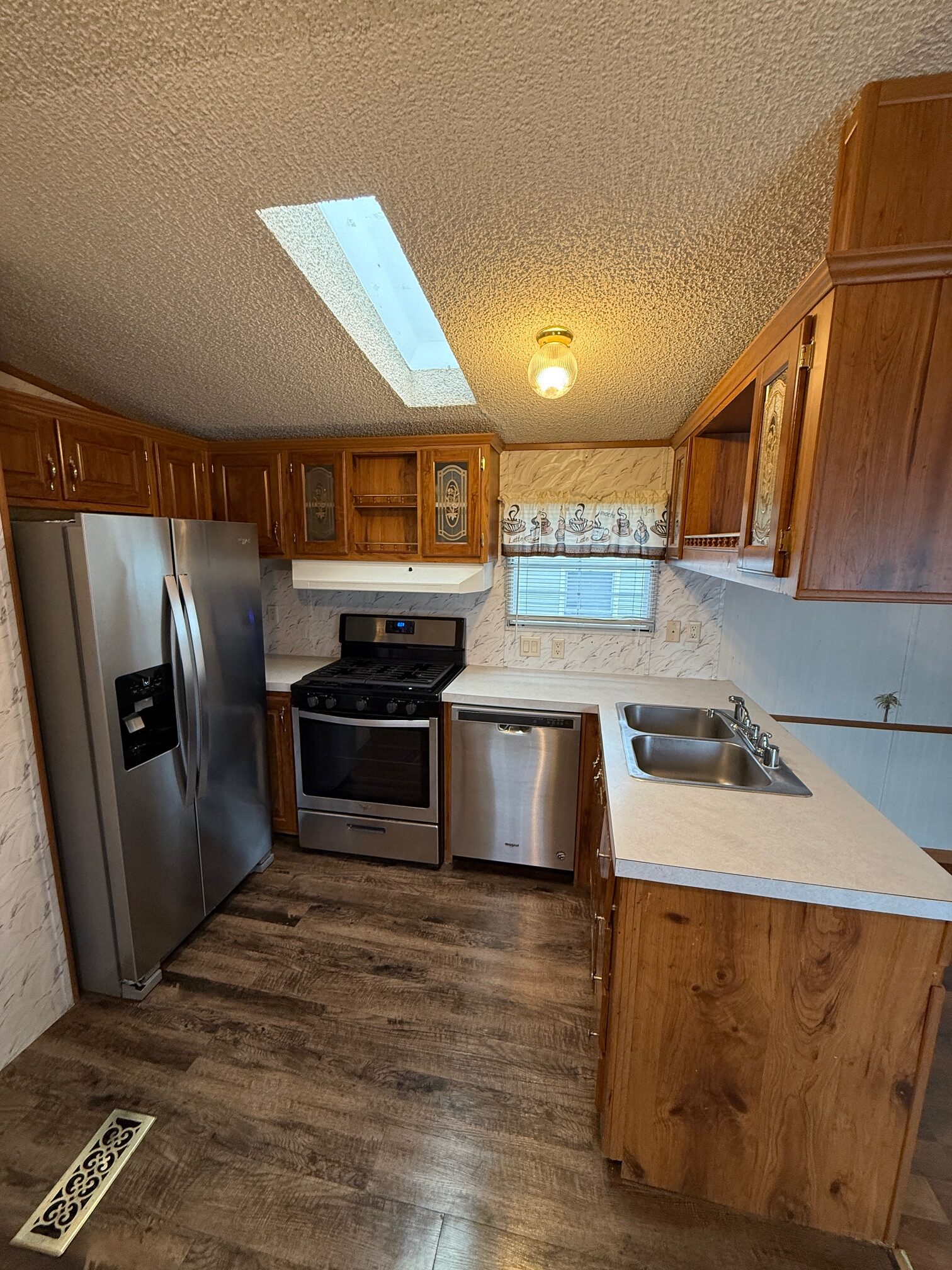 Wonderfully up kept, split 2 bedroom 1 full bath home. Walk in living room 12 x 12. Eat in kitchen with breakfast bar and over head cabinets. Deluxe stainless steel appliance package. Newer linoleum in living room and kitchen. Bathroom has fiberglass tub/shower combo, mirrored vanity medicine cabinet. Master bedroom 9 x 11 with built in closet. Front bedroom 9 x 11 also with walk-in closet. Furnace is less than a year old. Attached deck and shed also included. Call to see!