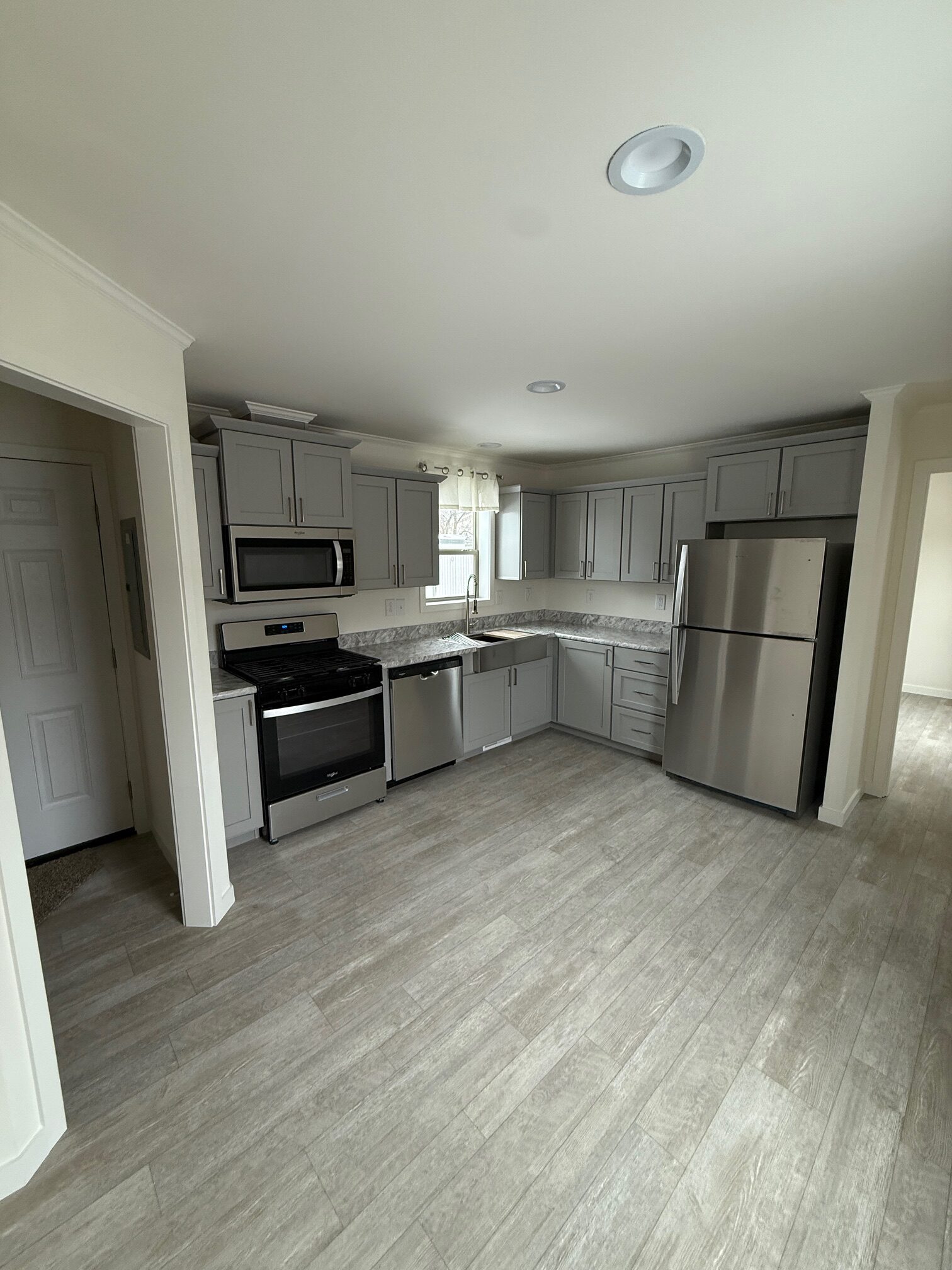 Wonderful, split, 2 bedroom 2 full bath NEW home available. Walk-in living room 12 x 14 with ceiling fan. Eat-in kitchen with window over sink, deluxe appliance package and separate utility room. Front bedroom 7 x 12 with a built in closet. Front bathroom has a single piece fiberglass tub/shower combo and transom window. Master bedroom is 10 x 12 and has a walk in closet and private full bath with a stand up shower. Home sits on a very nice sized lot with a yard and room for two car off street parking. Call to see!